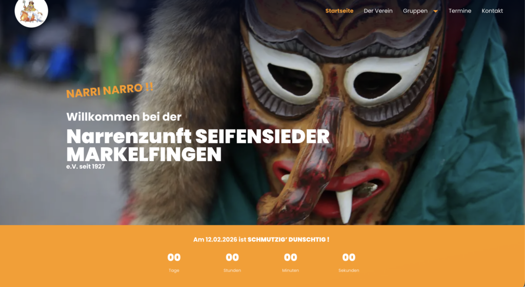 Außerdem gestalte ich den Webauftritt eines Radolfzeller Narrenvereins neu, um das Vereinsleben modern und lebendig online sichtbar zu machen.